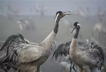 灰鹤是鹤形目鹤科鹤属鸟类,别名千岁鹤、玄鹤、番薯鹤、普通鹤、元鹤。通体羽色几乎全为灰色;前额和眼先黑色,头顶裸区部分呈朱红色,…全部>>