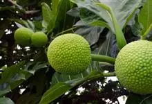 面包树 Fosberg)是桑科波罗蜜属植物。叶大,成熟之叶羽状分裂,表面深绿色,背面浅绿色;穗状花序单生叶腋,雄花序长圆筒形至长椭圆形或棒状;聚花果倒卵圆形或近球形;花期为3~5月,果期为7~10月。…全部>>