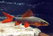 彩虹鲨是鲤形目鲤科野鲮属鱼类,别名红鳍野鲮、红鳍鲨。成鱼体长12厘米,体呈长梭形,侧稍扁。尾鳍呈叉状;背鳍特别宽大,嘴上有两根胡须。鱼体呈浅褐色,各鳍均呈橘红色;雄鱼的臀鳍镶有黑边,…全部>>