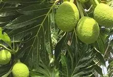 面包树 Fosberg)是桑科波罗蜜属植物。叶大,成熟之叶羽状分裂,表面深绿色,背面浅绿色;穗状花序单生叶腋,雄花序长圆筒形至长椭圆形或棒状;聚花果倒卵圆形或近球形;花期为3~5月,果期为7~10月。…全部>>