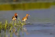 彩鹬是彩鹬科、彩鹬属下的一种小型涉禽,体长25厘米左右。嘴细长,尖端向下弯曲,雄鸟头具淡黄色中央纹。眼周黄色,并向后延伸成一柄状带。背具白色横斑,两侧具黄色纵带。胸侧至背有一白色宽带。雌鸟喉和前颈粟色。…全部>>
