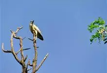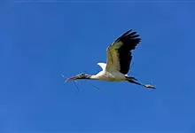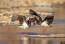 黑头鹮鹳:大型涉禽。体长102厘米,翼展150-175厘米,体重2050-2640克。寿命10年。嘴长而粗壮,飞时头颈伸直。雌雄相似。成鸟上体白色,下体白色。翼下覆羽有黑色横带,具绿色光泽和白色羽缘。…全部>>
