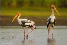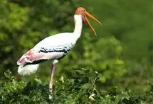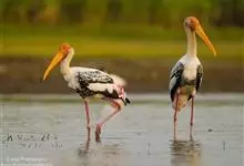 彩鹳:鹳科、鹮鹳属的鸟类。体长93-102厘米,体重2-3.5千克。橙黄色的嘴粗而长,但嘴尖稍微向下弯曲。脚为红色,也特别长,胫的下部裸出。橙色的头部赤裸无羽,繁殖期变为红色。体羽主要为黑色和白色,…全部>>