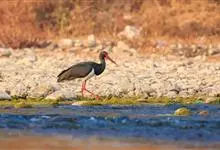 黑鹳是鹳形目鹳科鹳属鸟类,俗称乌鹳、钢鹳、老鹤。黑鹳头、颈和脊均呈黑褐色,故名黑鹳。黑鹳上体羽黑色、并带有绿紫色金属光泽,胸腹部羽白色;嘴、腿均红色;两性相似;成鸟嘴长而直,基部较粗,…全部>>