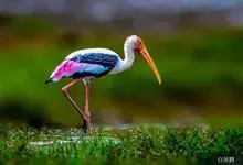 彩鹳:鹳科、鹮鹳属的鸟类。体长93-102厘米,体重2-3.5千克。橙黄色的嘴粗而长,但嘴尖稍微向下弯曲。脚为红色,也特别长,胫的下部裸出。橙色的头部赤裸无羽,繁殖期变为红色。体羽主要为黑色和白色,…全部>>