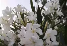 白花夹竹桃是夹竹桃科、夹竹桃属植物夹竹桃的栽培品种。常绿直立大灌木,枝条灰绿色;嫩枝条具稜,被微毛,老时毛脱落。叶3-4枚轮生,下枝为对生,叶面深绿,叶背浅绿色;侧脉纤细平行与中脉成直角;叶柄扁平,…全部>>
