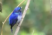小仙鹟:体长11-13厘米,是一种深色鹟。雄鸟深蓝,脸侧及喉黑,臀白,前额、颈侧及腰为闪辉蓝色。与大仙鹟的区别在体型较小,胸蓝色,臀白色。雌鸟褐色,翼及尾棕色,颈侧具闪辉蓝色斑块,喉皮黄,项纹浅皮黄。…全部>>