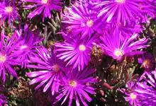 冰叶日中花,是番杏科日中花属的一年生或二年生草本植物。叶互生,卵形或长匙形,基部近心形,抱茎,边缘波状;花淡玫瑰红或带白色,近无梗。冰叶日中花在嫩绿色的叶面和嫩茎上长着密密麻麻的透明囊状细胞,…全部>>