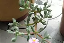 美丽日中花 N.E.Br.),是番杏科,松叶菊属多年生常绿草本。茎丛生,斜升,基部木质,多分枝。叶对生,肉质,三棱形,具凸尖头,基部抱茎,粉绿色,有多数小点。花单生枝端,苞片叶状,对生。花紫红色至白色,…全部>>