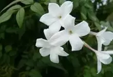 素馨花,木犀科素馨属多年生的攀援灌木植物。攀援灌木,小枝圆柱形,具棱或沟;叶对生,叶轴常具窄翼,小叶片卵形或长卵形;聚伞花序顶生或腋生,花序梗长,苞片线形,花萼无毛,裂片锥状线形,花冠白色,…全部>>