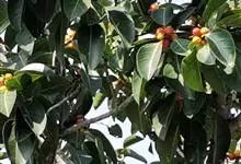 大果榕是桑科榕属的小乔木,株高可达10米;幼枝被柔毛;叶互生,宽卵状心形或近圆形;雄花无梗、匙形、花丝长,雌花生于雌株榕果内,子房白色;榕果簇生于树干基部或老茎短枝上、扁球形或陀螺形,…全部>>