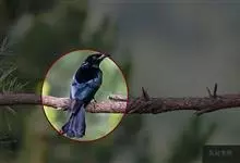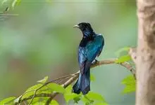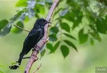 发冠卷尾是中型鸟类,体长28-35厘米。通体绒黑色缀蓝绿色金属光泽,额部具发丝状羽冠,外侧尾羽末端向上卷曲。栖息于海拔1500米以下的低山丘陵和山脚沟谷地带,多在常绿阔叶林、次生林或人工松林中活动。…全部>>