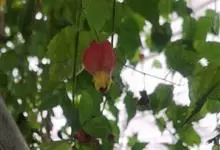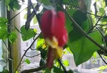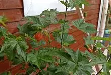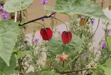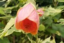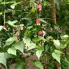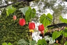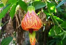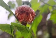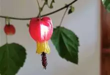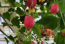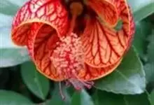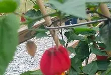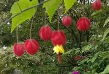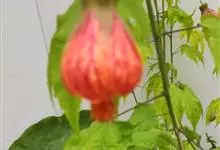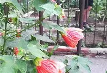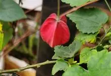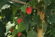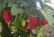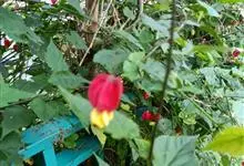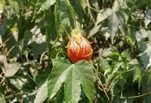 红萼苘麻是锦葵科、苘麻属常绿软木质灌木,叶绿色,长5-10厘米,心形,叶端尖,叶缘有钝锯齿,有时分裂,有细细的叶柄;叶互生,掌状叶脉;花单生于叶腋,具长梗,下垂;花萼红色,半套着大约4厘米长的花瓣,…全部>>