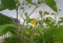苘麻锦葵科苘麻属一年生亚灌木草本植物。茎秆较高,上面有柔毛;叶子较大且有纹路,浅绿色,边缘不平整,叶柄较长;花朵呈扇形,表面有细毛,黄色;果实较小,呈半球形,种子为褐色。花期5—6月,果期7—9月。…全部>>