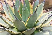 狭叶龙舌兰是天门冬科龙舌兰属的多年生植物。茎高25至50厘米;叶呈莲座式排列,肉质,剑形,淡绿色,有时杂色;边缘有小刺状锯齿,顶端有1尖硬刺,刺暗褐色;圆锥花序长达5至7米,…全部>>