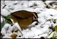 白颊噪鹛是雀形目噪鹛科噪鹛属鸟类,又称土画眉、小画眉、小噪鹃。成鸟额至头顶栗褐色,长眉纹、眼先和颊纹棕白色,眼后至耳羽深褐色,…全部>>