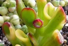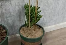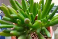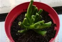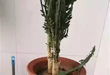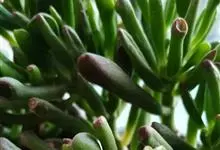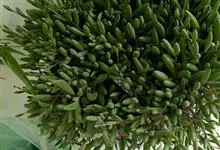 筒叶花月,是景天科青锁龙属的多年生草本植物。植株多分株,灌木状,茎较粗壮,圆柱形,表皮灰褐色;叶片肉质,互生,呈圆筒状,簇生于茎或分枝顶端,叶端呈斜截形,截面为椭圆形;花呈星状,淡白色;花期秋季。…全部>>