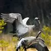 灰鹤是鹤形目鹤科鹤属鸟类,别名千岁鹤、玄鹤、番薯鹤、普通鹤、元鹤。通体羽色几乎全为灰色;前额和眼先黑色,头顶裸区部分呈朱红色,…全部>>