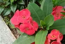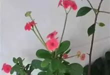 虎刺梅:别称铁海棠,是蔓生灌木植物。茎多分枝,长60-100厘米,直径5-10毫米,具纵棱,密生硬而尖的锥状刺,刺长1-1.5厘米,直径0.5-1.0 毫米,常呈3-5列排列于棱脊上,呈旋转。叶互生…全部>>