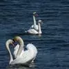 疣鼻天鹅:是鸟纲、鸭科、天鹅属的一种大型的游禽,体长1.2-1.5米,体重6.75-10千克。脖颈细长,前额有一块瘤疣的突起,因此得名。全身羽毛洁白。在水中游泳时,颈部弯曲而略似“S“形。…全部>>