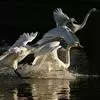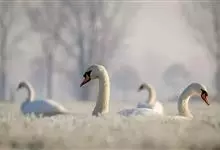 扁嘴天鹅:体长90-115厘米,体羽白色,羽端黑色,在飞行时则很明显。雁喙和脚红色。栖息于茂密的沼泽及湖泊,主要吃草及水生植物,也会吃蚌类及鱼类。分布于南美洲,…全部>>