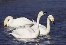 小天鹅为大型水禽,体长110~130厘米,体重4~7千克,雌鸟略小。它与大天鹅在体形上非常相似,同样是长长的脖颈,纯白的羽毛,黑色的脚和蹼,身体也只是稍稍小一些,颈部和嘴比大天鹅略短,但很难分辩。最…全部>>