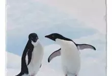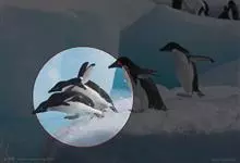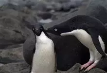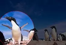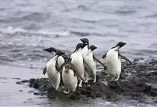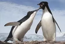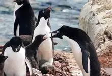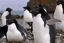 阿德利企鹅在企鹅家族中属中、小型种类,体长72-76厘米,和许多种类企鹅一样,雌鸟和雄鸟同形同色,从外形难以辨认。眼圈为白色,头部呈蓝绿色,嘴为黑色,嘴角有细长羽毛。羽毛由黑、白两色组成,…全部>>