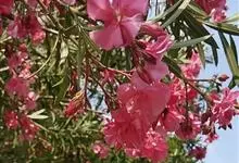 夹竹桃,又名红花夹竹桃、欧洲夹竹桃,是夹竹桃科夹竹桃属的一种常绿直立大灌木,枝条灰绿色,含水液。叶披针形,3叶轮生。聚伞花序顶生,花冠粉红至深红色,花冠漏斗状,有特殊香味。蓇葖果,圆柱形。种子长圆形,…全部>>