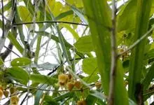 中华猕猴桃,是猕猴桃科猕猴桃属的多年生木本植物,幼枝有白色绒毛;叶纸质,呈倒阔卵形;聚伞花序,花片小,卵形;果黄褐色,球形或倒卵形;花期4-5月;果期8-10月。“猕猴桃”最早由李时珍命名:“其形如梨,…全部>>