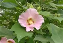 海滨木槿是锦葵科木槿属植物,落叶小乔木,株高3-5米,胸径20厘米,扁球形树冠,枝叶繁盛。厚纸质单叶互生,扁圆形、倒卵形或宽倒卵形,先端钝近平,具短突尖,基部圆形或浅心形,叶缘中上部具细圆齿,…全部>>