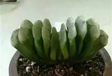 绿玉扇是芦荟科十二卷属多年生常绿多肉植物。无茎,株高5~8厘米;肉质叶左右排成两列呈扇形,叶片直立,稍向内弯,表面略显粗糙,绿色至暗绿褐色,新叶的截面部分透明,呈灰白色。总状花序,花细筒状,白色,…全部>>