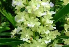多花指甲兰是兰科、指甲兰属植物。茎粗壮,叶肉质。花序叶腋生,柄粗壮,轴较长,密生许多花;花苞片绿色,质地厚,卵状披针形;花梗和子房白色带淡紫色晕;子房棒状,…全部>>