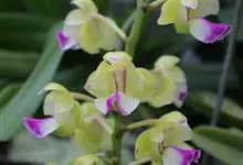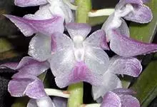 指甲兰是兰科指甲兰属植物。其茎粗壮;叶带状;总状花序疏生数朵花;萼片和花瓣淡白色,上部具紫红色;唇瓣侧裂片镰状长圆形;中裂片近宽卵形,前半部紫色,后半部白色带紫色斑点和条纹,先端凹缺,…全部>>