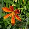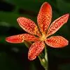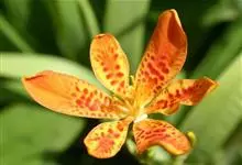 射干 Redouté)是鸢尾科射干属多年生草本植物。根状茎为不规则的块状,斜黄色或黄褐色;花橙红色,散生紫褐色的斑点;花药呈条形;子房下位,倒卵形;蒴果倒卵形或长椭圆形;种子圆球形,黑紫色,有光泽。…全部>>