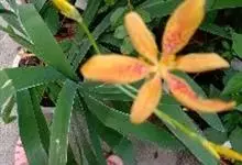 雄黄兰是鸢尾科雄黄兰属多年生草本植物。雄黄兰具扁球径,叶多基生,剑形;花茎由多花给成疏散的穗状花序,花冠漏斗状,深橙红色;蒴果。 花期7-8月,果期8-10月 。雄黄兰因橘红色的花与雄黄颜色相似而得名。…全部>>