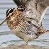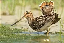 扇尾沙锥是鹬科、沙锥属鸟类,又称普通沙锥、扇尾鹬、小沙锥。体型小;喙粗长而直;上体黑褐色,具栗色和黄白色斑纹;头顶具黄白色中央冠纹,背具4条白纵带;下体白色,颈、胸淡褐色,带褐色纵纹;翼后缘白色,…全部>>
