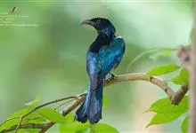 发冠卷尾是中型鸟类,体长28-35厘米。通体绒黑色缀蓝绿色金属光泽,额部具发丝状羽冠,外侧尾羽末端向上卷曲。栖息于海拔1500米以下的低山丘陵和山脚沟谷地带,多在常绿阔叶林、次生林或人工松林中活动。…全部>>