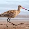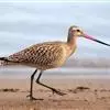 斑尾塍鹬,是鸻形目鹬科塍鹬属鸟类。其体形较大,体长约40厘米;喙较长,基部肉红色、尖端黑色而略向上翘;贯眼纹细而深,眉纹白色明显;雌鸟体型比雄鸟大,喙部也明显更长。非繁殖期雌雄鸟羽色相似,…全部>>