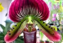 虎斑兜兰兰科,兜兰属地生或半附生植物。叶基生;数枚至多枚,叶片带形、革质。花葶从叶丛中长出,花苞片非叶状;子房顶端常收狭成喙状;花大而艳丽,有种种色泽;中萼直立,花粉粉质或带粘性,退化雄蕊扁平;柱头…全部>>