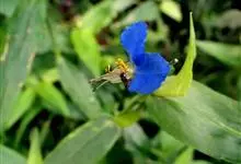 鸭跖草,是鸭跖草科鸭跖草属的—年生披散草本植物。鸭跖草的茎匍匐生根,多分枝;叶披针形或卵状披针形;萼片膜质,花瓣深蓝色;蒴果椭圆形;种子棕黄色,一端平截,腹面平,有不规则窝孔;花期7-9月,…全部>>