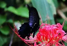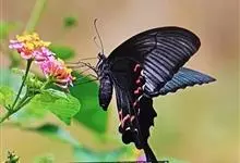蓝凤蝶,Papilio protenor Cramer,凤蝶科凤蝶属的一种昆虫。翅展95~120mm。翅黑色,有靛蓝色天鹅绒光泽。雄蝶后翅正面前缘有黄白色斑纹,…全部>>