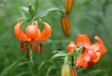东北百合,别名卷莲花、老哇芋头、轮叶百合、伞蛋花、山丹花,为百合科、百合属多年生球根花卉。鳞茎卵圆形,白色,有节。苞片叶状,花淡橙红色,具紫红色斑点;花被片稍反卷,蒴果倒卵形,花期7-8月,果期9月,…全部>>