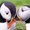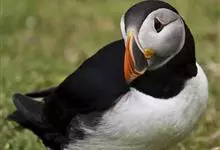 角海鹦:是鸻形目海雀科的鸟类,体重581-648克,体长约32厘米,翼展18-20厘米。是一种身体结实的鸟类,蹼脚、翅膀短,擅长游泳捕鱼,而在陆地上行走时则显得僵硬、步履蹒跚。有一张大嘴巴,呈三角形…全部>>