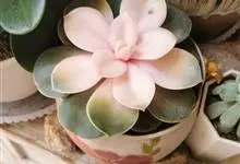 紫珍珠是景天科石莲花属的多年生肉质草本植物。植株中小型;叶片肉质,匙形,呈莲座状紧密排列;叶片粉紫色,叶缘呈粉白色,光照充足时颜色亮丽,不足时叶色会呈现深绿色或灰绿色,叶面光滑,被轻微白粉,…全部>>