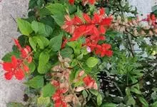 一串红,又称爆仗红、象牙红,为唇形科鼠尾草属植物。花序修长,色红鲜艳,花期又长,适应性强,为中国城市和园林中最普遍栽培的草本花卉。原产巴西、南美洲。喜温暖和阳光充足环境。不耐寒,耐半阴,忌霜雪和高温,…全部>>