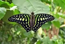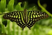 青带凤蝶Graphium sarpedon ,又名青凤蝶,是最普遍的中型凤蝶,飞行速度很快。青带凤蝶的翅膀中央有许多浅蓝色的斑点,很整齐地排列成一条直线。这些斑点由上而下逐渐变大,就像一条青色的带子。全部>>
