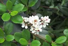 石斑木 Lindl.)是蔷薇科石斑木属植物,常绿灌木,稀小乔木,高可达4米;幼枝初被褐色绒毛,以后逐渐脱落近于无毛。叶片集生于枝顶,卵形、长圆形,稀倒卵形或长圆披针形。顶生圆锥花序或总状花序,…全部>>
