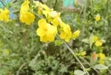 迎春花,木犀科素馨属的多年生木本植物,小枝细长直立或者呈拱形下垂;叶片呈卵形或椭圆形;花单生于叶腋处,苞片呈披针形或椭圆形,花冠为金黄色,花瓣通常为倒卵形或椭圆形;花期在6月。…全部>>