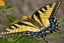 金凤蝶,是鳞翅目凤蝶科凤蝶属动物。金凤蝶为中型凤蝶,翅展70-84毫米,翅背面底色黑褐色,翅脉黑色,翅室具黄斑;前翅背面基部呈暗黄色,亚外缘为黑色,内具一列小黄斑;后翅背面亚外缘区具黑宽边,…全部>>
