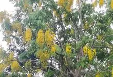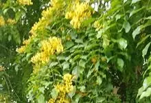 腊肠树:是豆科腊肠树属植物。落叶乔木,高可达15米;枝细长;树皮灰色,老时粗糙,暗褐色。叶长30-40厘米,小叶对生,薄革质,阔卵形,卵形或长圆形,边全缘,幼嫩时两面被微柔毛,老时无毛;叶脉纤细,…全部>>